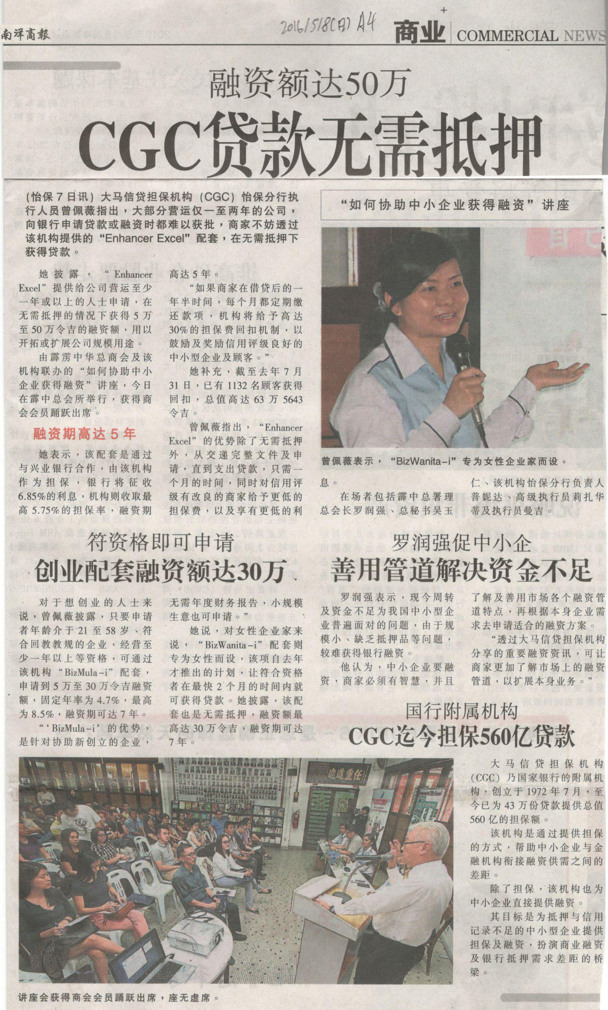 融资额达50万CGC贷款无需抵押